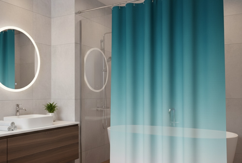 An ombre shower curtain fades from light to deep color in a soft way. This adds motion and depth to the space. Start with pale tones at the top and move to richer shades below for balance. It brightens small rooms while adding interest.