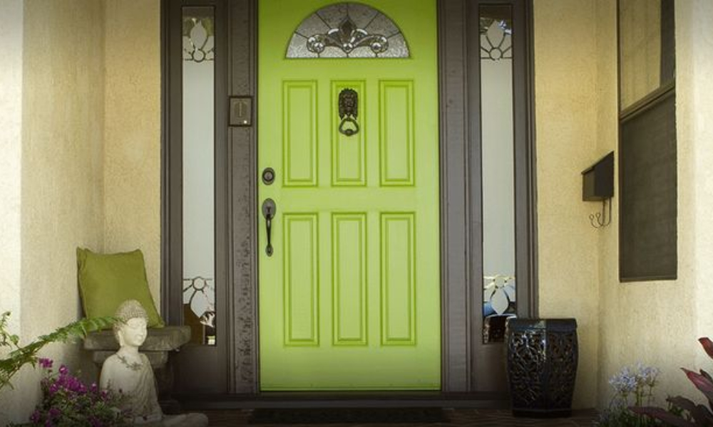Bright colours such as red, yellow or blue are trendy. Grey or black are some of the very quiet colors. Wipe the door first, then apply the primer and paint so that the color is long-lasting. Do not forget about painting the frame of the door.