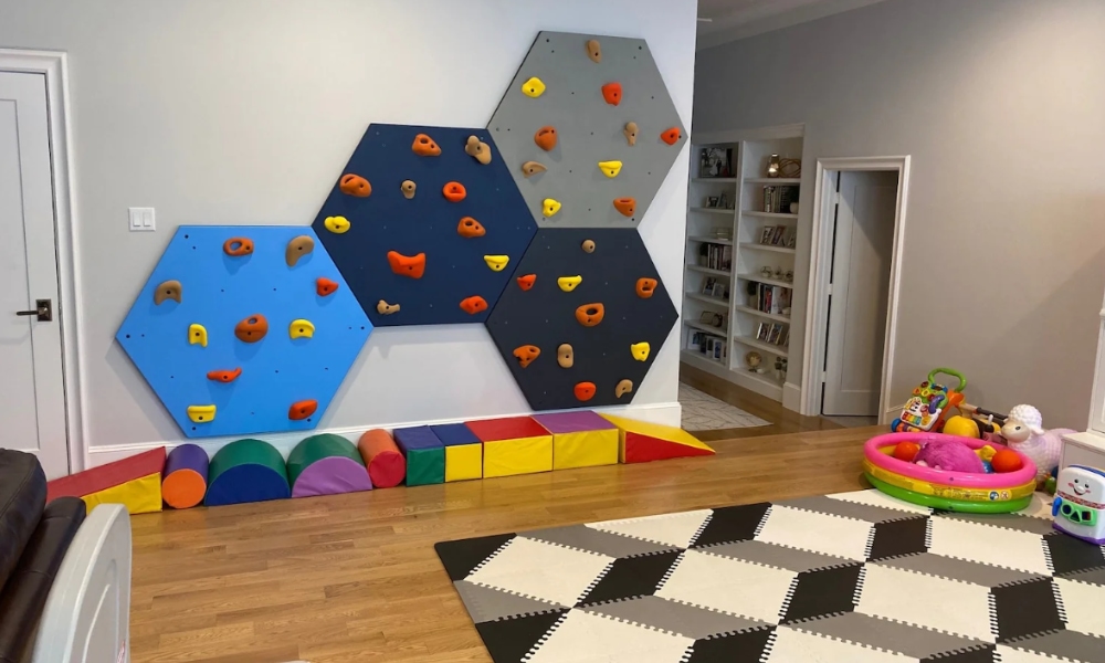 Active kids need somewhere to climb and move around. You can buy climbing rocks online and stick them on a strong wall. Start low for little ones.