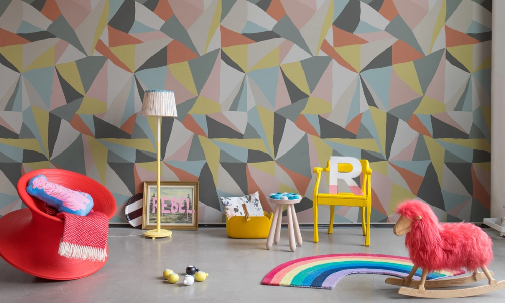 Those triangle and zigzag patterns look really cool. Pick bright colors your kid loves. It makes the room feel special without costing too much.