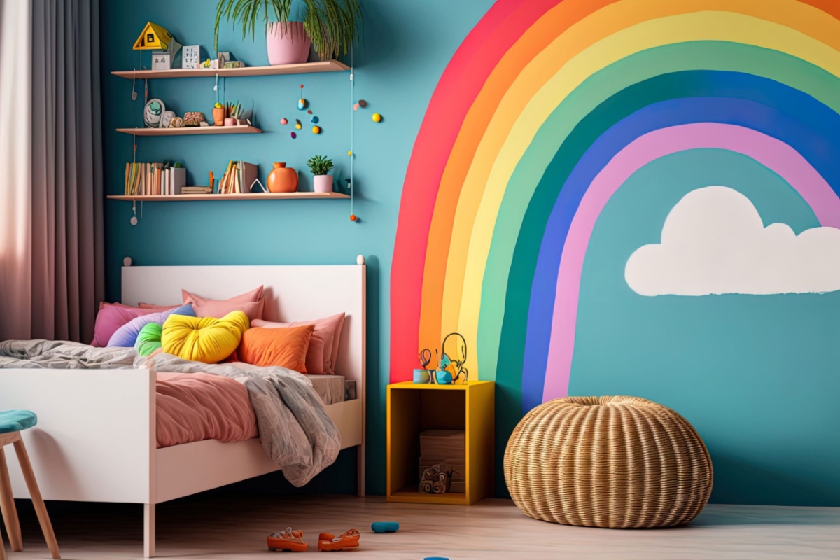 Pastel rainbows appeal to wide age ranges and don’t look babyish as children grow. Natural lighting changes how different colored walls appear throughout days.