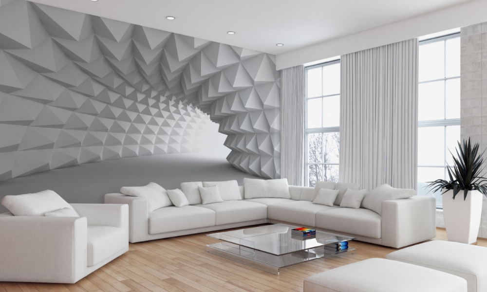 3D wallpapers add shadow and shape to a wall. They can be sculpted panels, raised prints or textured vinyl. Apply to one wall only for a neat focal point.