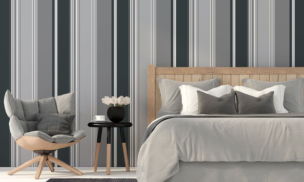 Stripes are a classic tool to change the room shape. Vertical stripes make ceilings feel taller. Horizontal stripes widen narrow rooms. Thin stripes feel subtle while wide stripes make a bold statement.