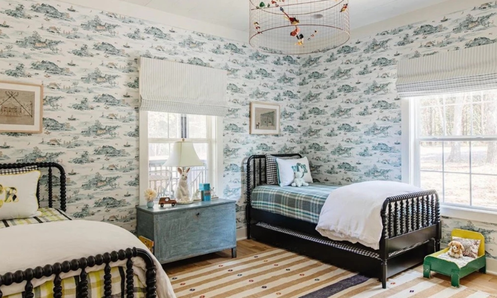 This keeps the room calm and not busy. Use the same trim color to tie both parts together. Mixing works well in rental homes if you use removable paper. This method gives you a pattern without full commitment and keeps the room easy to edit later.