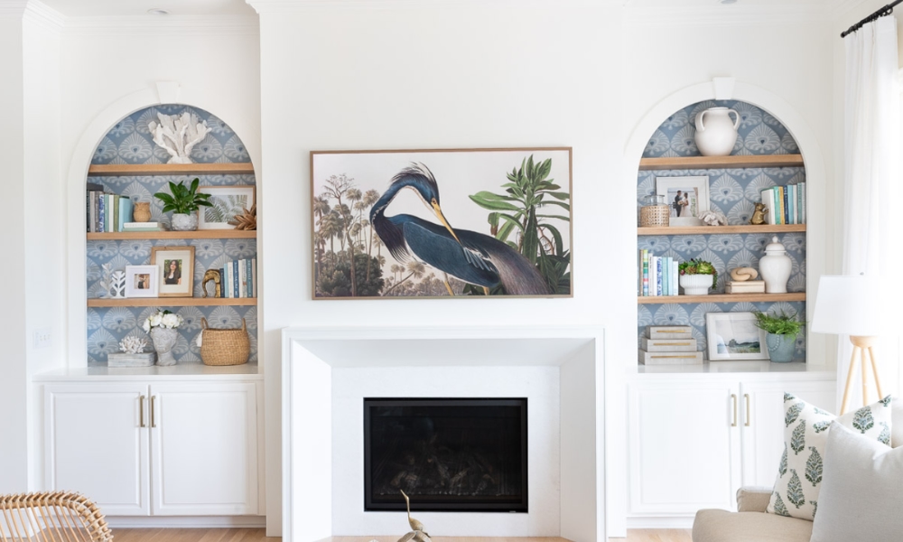 Use patterned wallpaper to make the fireplace the room hero. Pick a pattern that fits the room scale. Big patterns work well on large mantels. Small patterns suit small mantels. Run the paper just inside the mantle or all the way to the ceiling for drama.