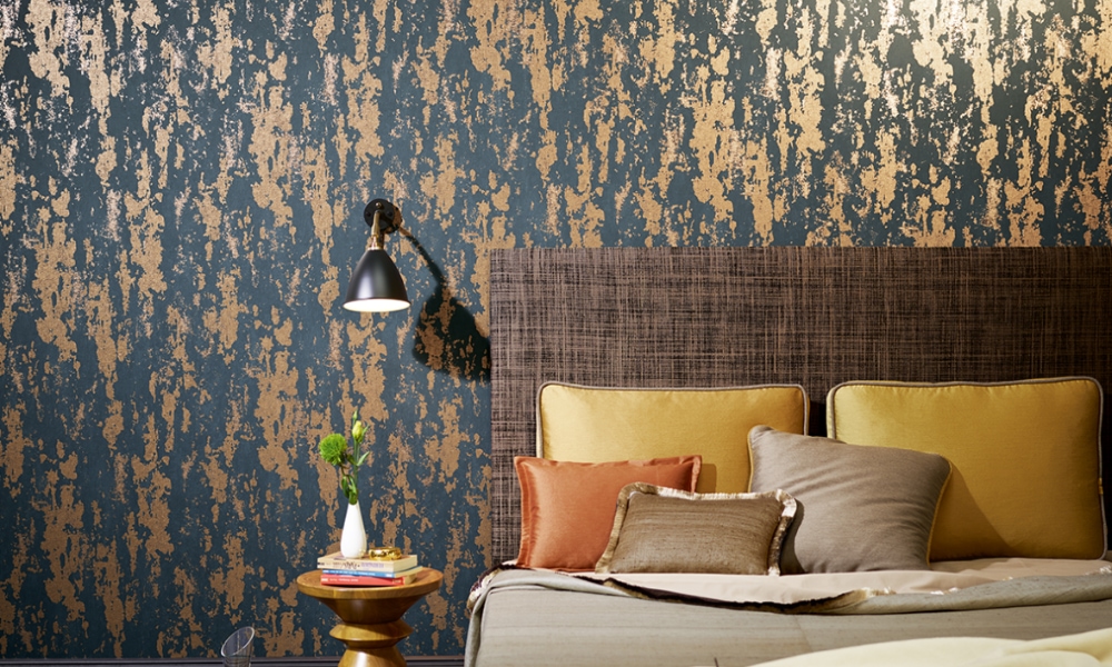 Metallic finishes add instant glamour and shine. Gold, bronze, or silver inks lift the mood and add luxury. Use metallics on one wall or as subtle highlights in a patterned paper. Velvet furniture, mirrored tables, and rich textures pair well with metallic wallpaper.