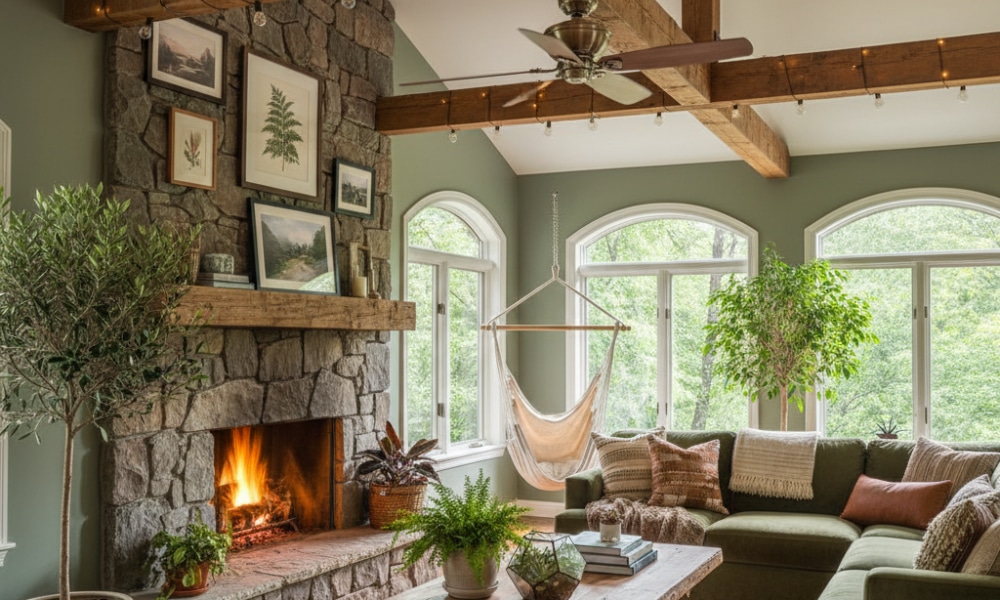 Big doors that open wide help. Choose durable fabrics that look natural. This keeps life easy and bright. The home feels like a retreat that flows into nature.