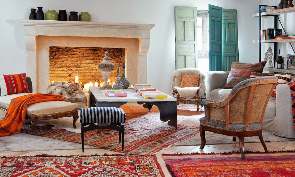 Choose linen, cotton and wool for cushions, curtains and throws. Layer rugs to add warmth and pattern without noise. Use plain rugs under patterned ones for balance. Pick earthy tones and soft blues for contrast.
