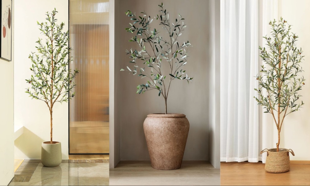 Bring in green plants and medium trees like olive or ficus. Plants add life and a soft green palette. Use clay or terracotta pots to match other materials. Place plants near windows for light.